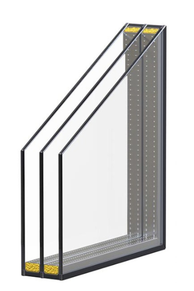 Triple-glazing, twin-chamber (4-18Ar-4-18Ar-4), 48mm unit, the heat transfer coefficient Ug = 0.5 W / m2K (EN-PN 674), inter-pane cavity filled with krypton.